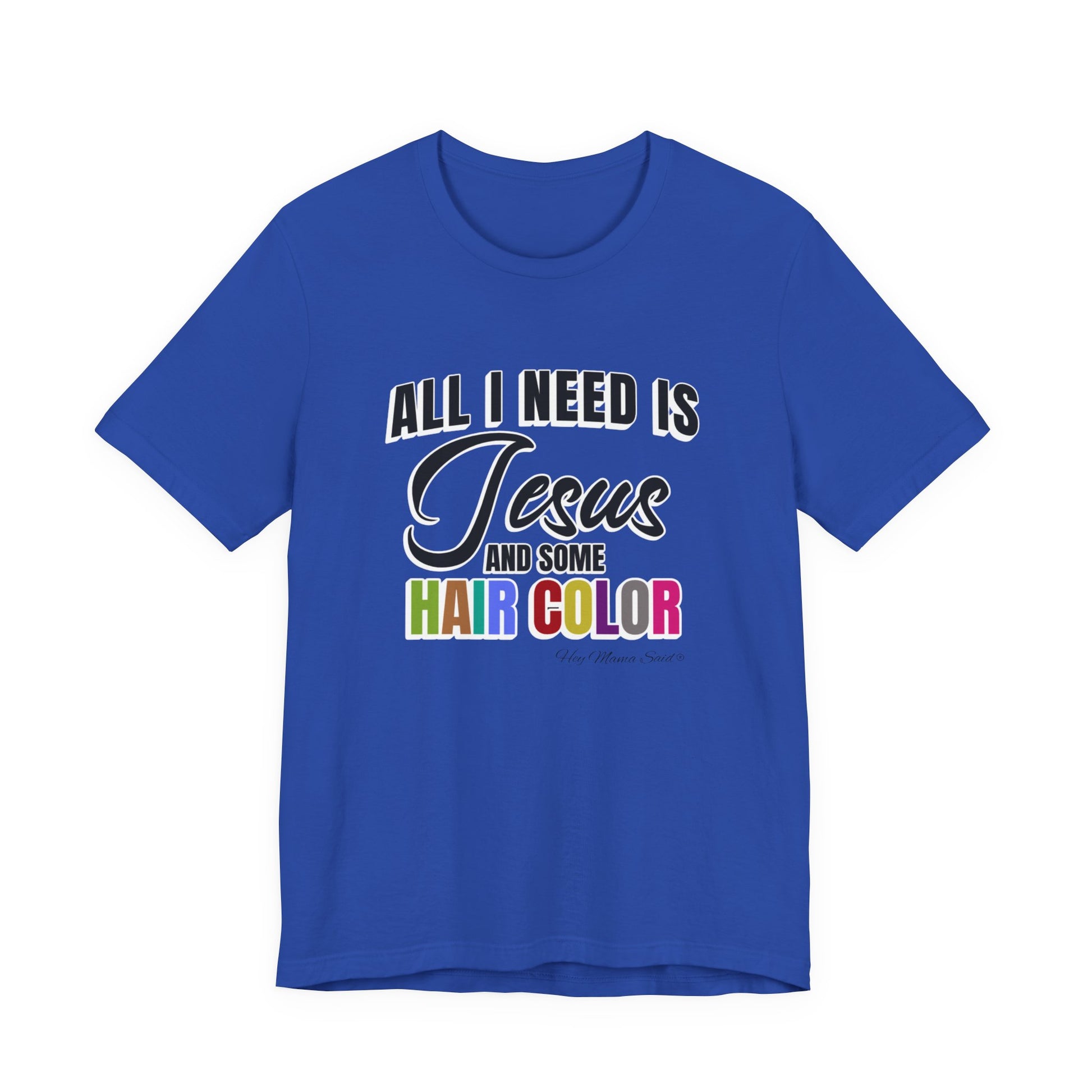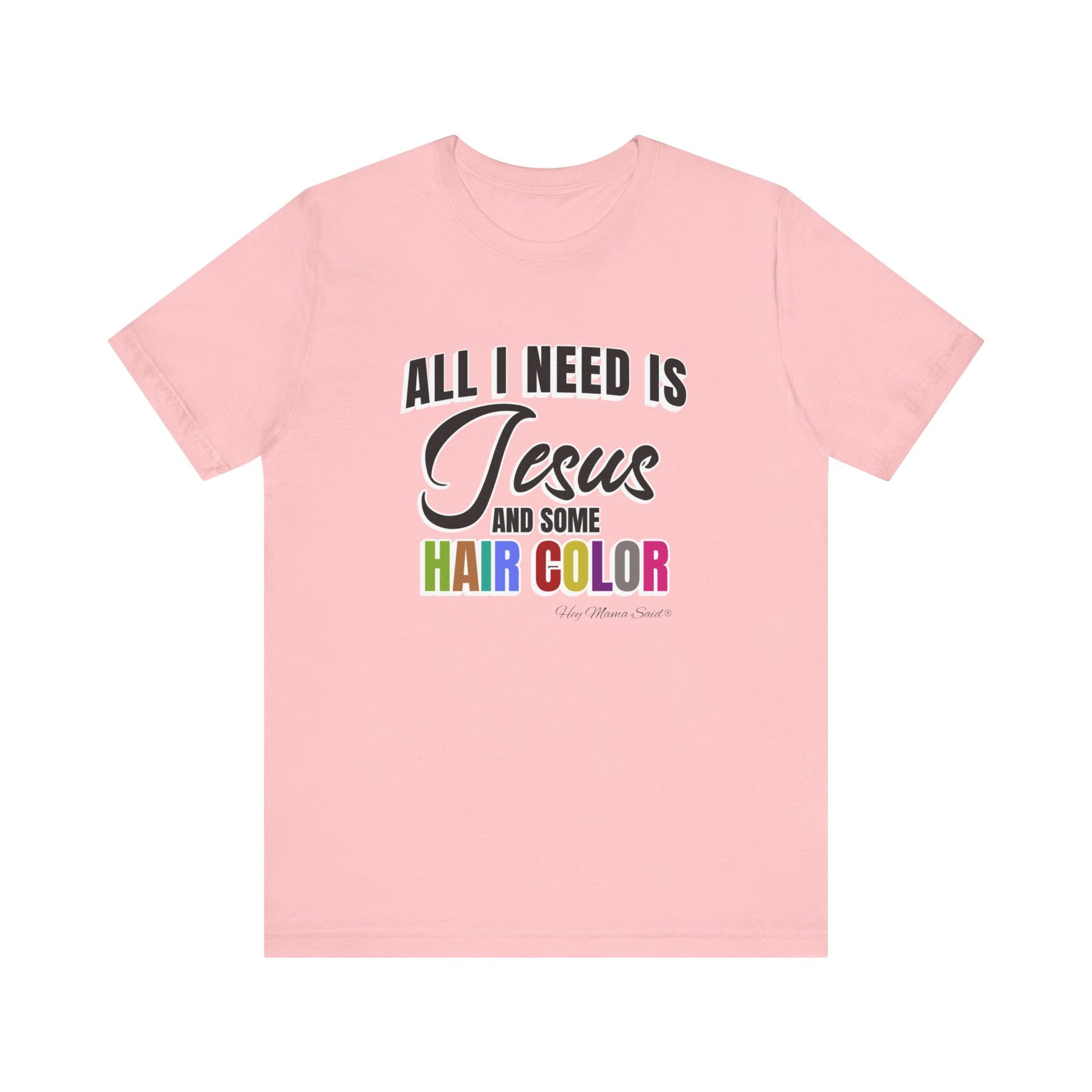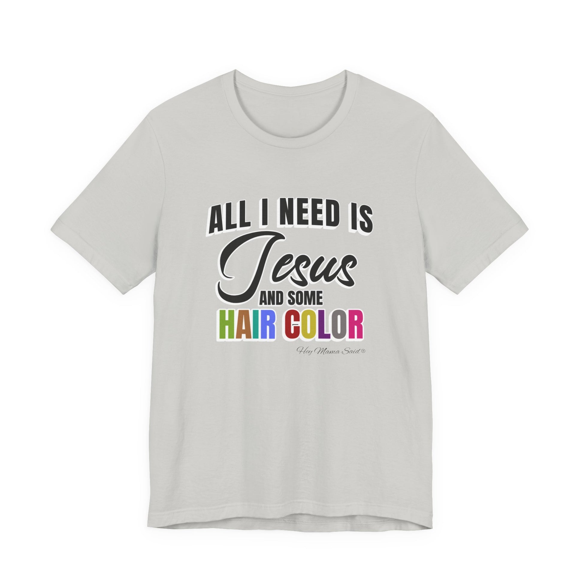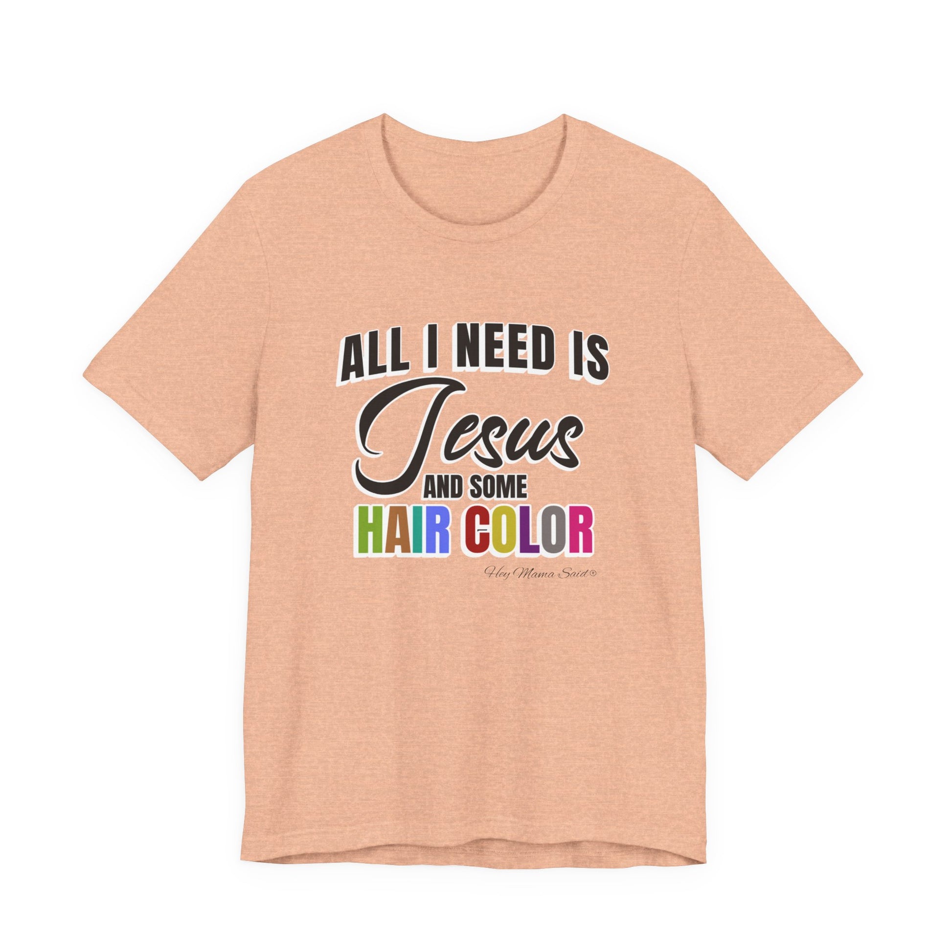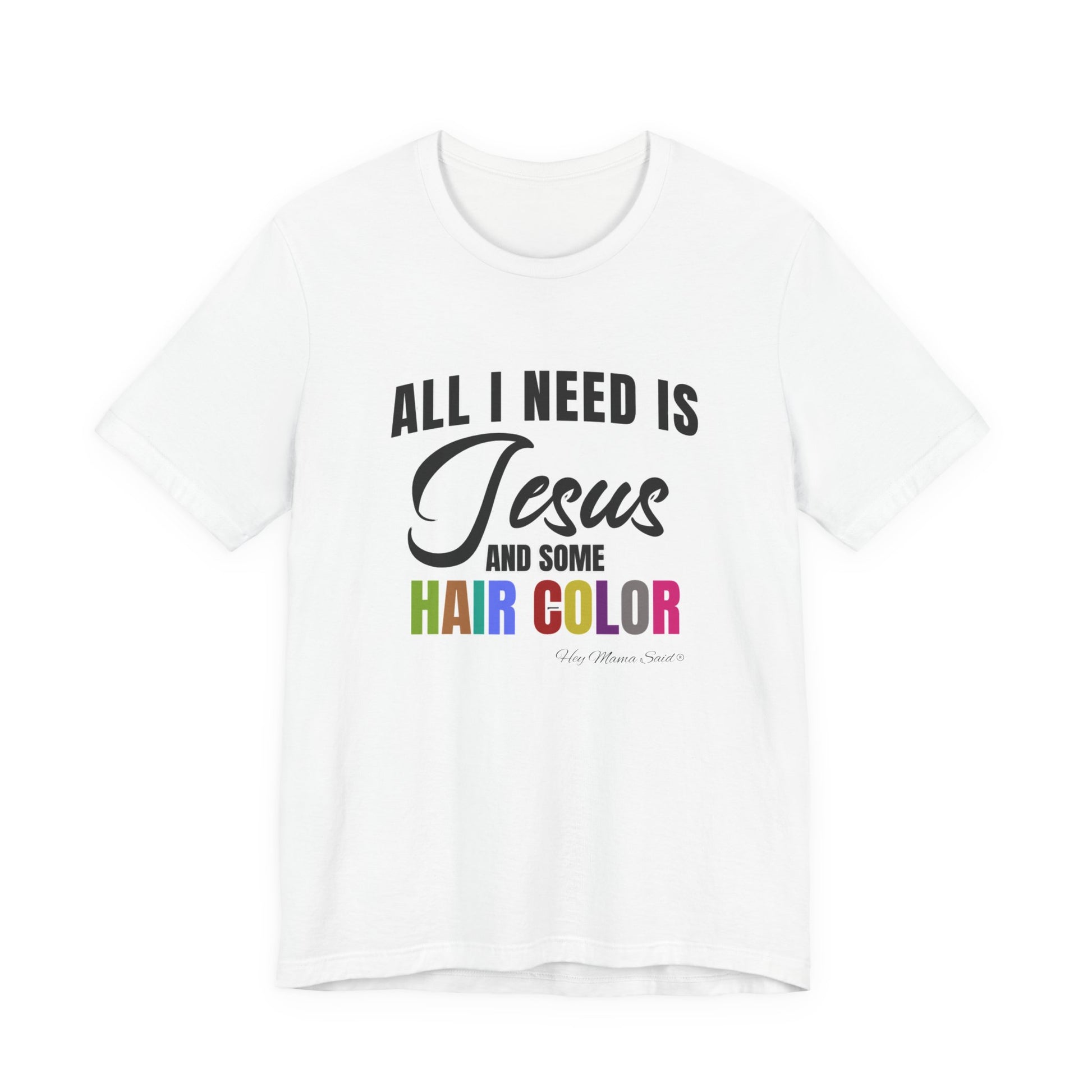 Faith and style go hand in hand with this "All I Need Is Jesus and Hair Color" tee. Perfect for men or women who love expressing both their spiritual side and their love for bold, beautiful hair, this shirt is a fun reminder of what truly keeps you going. Made from soft, breathable cotton, it’s comfortable enough for everyday wear—whether you’re heading to church, the salon, or just out and about. Pair it with your favorite jeans for a casual yet meaningful look.